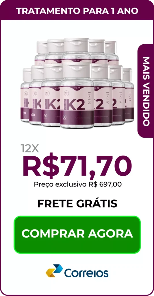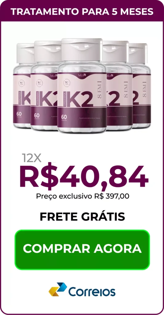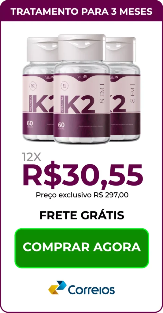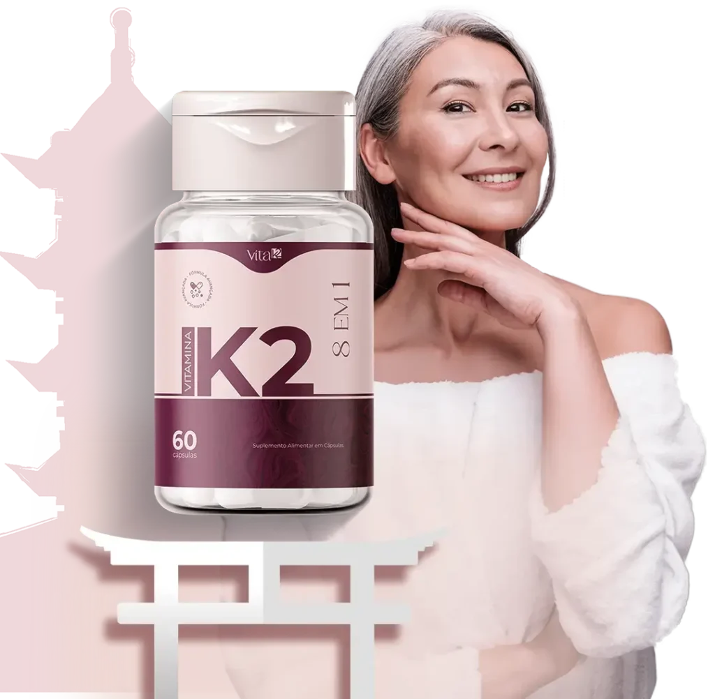 Com alta concentração de vitamina k2 combinada com 7 ingredientes naturais potencializadores, Vita K2 é o tratamento mais avançado da atualidade. Único capaz de reduzir rugas, linhas de expressão e manchas na pele de forma natural e gradual.