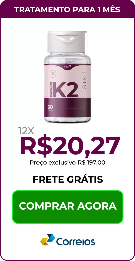 Nosso produto é sinônimo de qualidade e segurança, mantendo total conformidade com as regulamentações da Anvisa. Cada cápsula é cuidadosamente formulada para atender aos padrões mais exigentes, garantindo a melhor experiência para sua saúde e bem-estar. Vita K2 prioriza sua saúde, sempre em conformidade com as diretrizes da Anvisa.